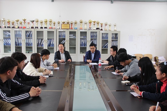 自由发言环节结束后,贺书记在座谈会上特别引用青岛二中在国际赛事获奖的实例,鼓励同学们积极参加各项比赛,把院系对于创新创业工作的支持政策进行讲解,更是把参加此类赛事的作用及重要性充分体现。赵院长也在随后的讲话中表示,参加此类赛事要重视专业知识,夯实基础,进而拓展深度广度。并希望同学们能够把它当做“游戏”,利用QQ、微博等网络手段,玩出乐趣,玩出新意,玩出个性。