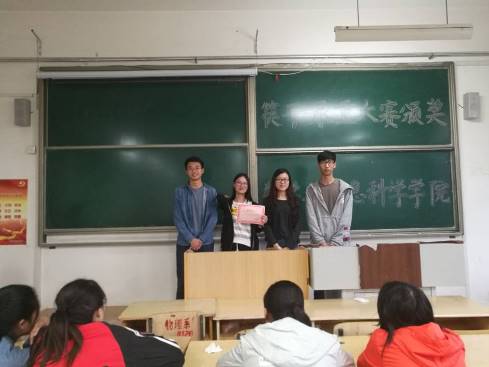 4月17日晚6点创新创业部部长于少卿在人合楼8126教室公布比赛成绩:“此次比赛共设四个奖项,通过现场评委打分及微信平台投票分数相加后,下面我宣布此次获奖名单,第四组同学获得最佳优秀奖,第三组、十二组、十三组同学荣获三等奖,第五组、十一组同学荣获二等奖,第二组同学荣获一等奖!让我们用热烈的掌声恭贺以上获奖同学!”随后,部长于少卿及副部长周文博分别为获奖同学颁发荣誉证书并合影留念。最后,于少卿总结说:“感谢同学们对本次比赛的支持,虽然比赛还存在些许的不足之处,但相信接下来的每一届比赛会更加完善,同学们的表现会更加优秀,同时希望同学们能够积极参与到今后的每一场比赛中,学习到更多的知识,再次感谢大家的热情参与。”