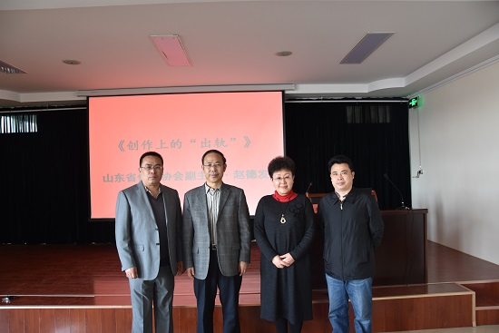 为激发同学们的阅读兴趣,提高同学们的写作能力,由文学与新闻传播学院和科研处共同主办的名家讲坛于4月14日下午2:30在潍坊学院行政楼705会议室举行,山东省作家协会副主席赵德发受邀为同学们做了题为“创作上的‘出轨’”的报告。参与此次报告会的有文学与新闻传播学院副院长王恒升,党总支书记郭顺敏和2015级汉语言文学学生。
