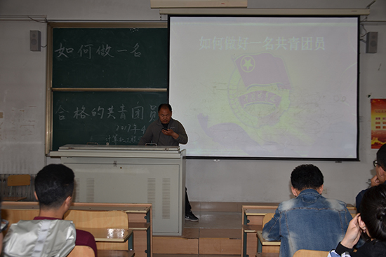 会议一开始孙书超就“我们为什么要入团”的问题对现场左右同学发问,入团的意识不应该只是在儿童时期被教导,接着她举出了《人民的名义》中陈岩石老检察长的例子。陈岩石说:“不是共产党员,就没有资格背炸药包参加尖刀班,那个时候,背炸药包才是共产党员的特权呀。”陈老的话进一步表明了共产主义青年团是中国共产党领导的先进青年组织。接着又分别从共青团的性质、历史及作用三方面展开了讲述。共青团是中国共产党联系青年群众的桥梁和纽带,是中华人民共和国的重要社会支柱之一,也是中国共产党的助手和后备军。接下来又向大家提出了几点要求:一、自觉加强理论学习,加强组织纪律性二、学习刻苦,学会劳逸结合三、有生活原则,有自我监督机制四、注意起码的生活礼仪和培养良好的习惯五、把握全局,落实实践。最后全体同学起立一起宣读了中国共青团入团誓词,至此本次会议圆满结束。
