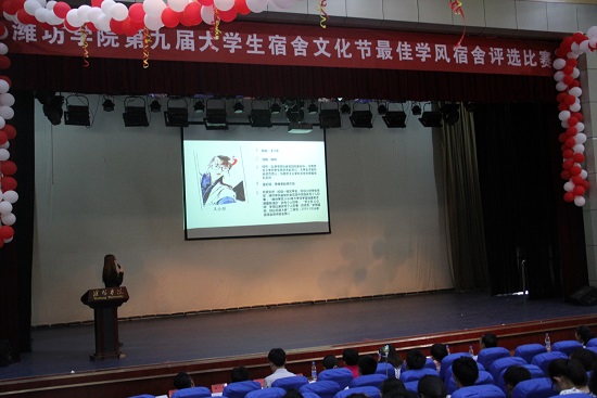 为推动校园文化建设,营造积极高雅的校园文化氛围,展现潍院学子的艺术风采和精神风貌。在潍院第九届宿舍文化节期间,潍坊学院于图书馆报告厅举办“十佳才艺宿舍”和"最佳学风宿舍"的评选活动。马克思主义学院2015级思想政治教育1班7106宿舍和7102宿舍代表学院参加了本次评选活动并取得佳绩。