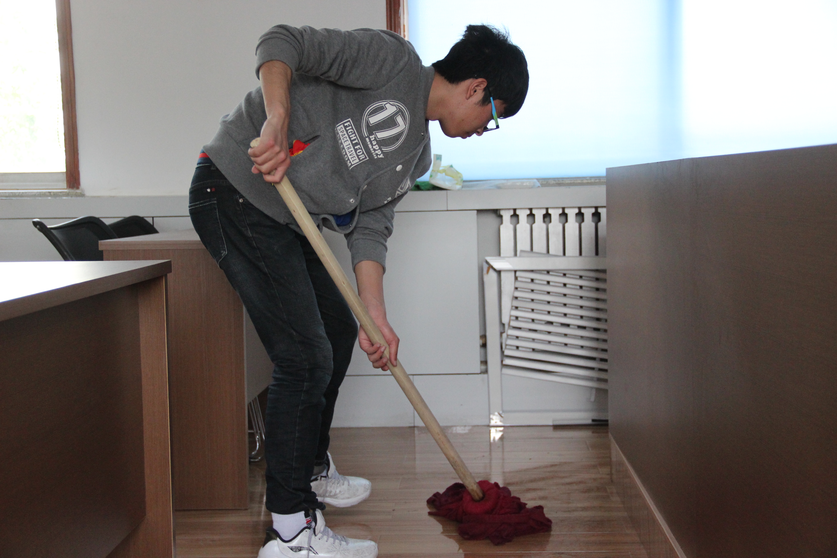 长时间未使用的活动室,已布满了灰尘,空气中浮动着固体小颗粒。虽然环境脏乱,也没有任何防护措施,但量子成员们毅然接受,斗志满满。经过简单的讨论和任务分配,他们便开始了打扫工作。一部分成员拿着抹布,另一部分成员拿着扫把和拖把,他们相互配合,积极合作,按着擦、扫、拖的顺序将工作有序地进行着。从墙壁瓷砖到窗户玻璃,从地板到桌椅,从活动室到走廊,他们注意着每一个细节,用心打扫,努力将工作做到细处。时间从他们的指缝间溜走,活动室里的灰尘被渐渐拭去,在最后时刻,他们将桌椅摆放整齐,结束了这次的劳动。量子成员们看着焕然一新的活动室,擦着脸上的汗水,露出了满意的笑容,社区服务人员也非常感谢他们的帮助。量子志愿者服务队其中一位成员说:“这是我们该做的,服务社会是每个人的责任,不管多脏多累,劳动之后,我们都是高兴的,骄傲的。”