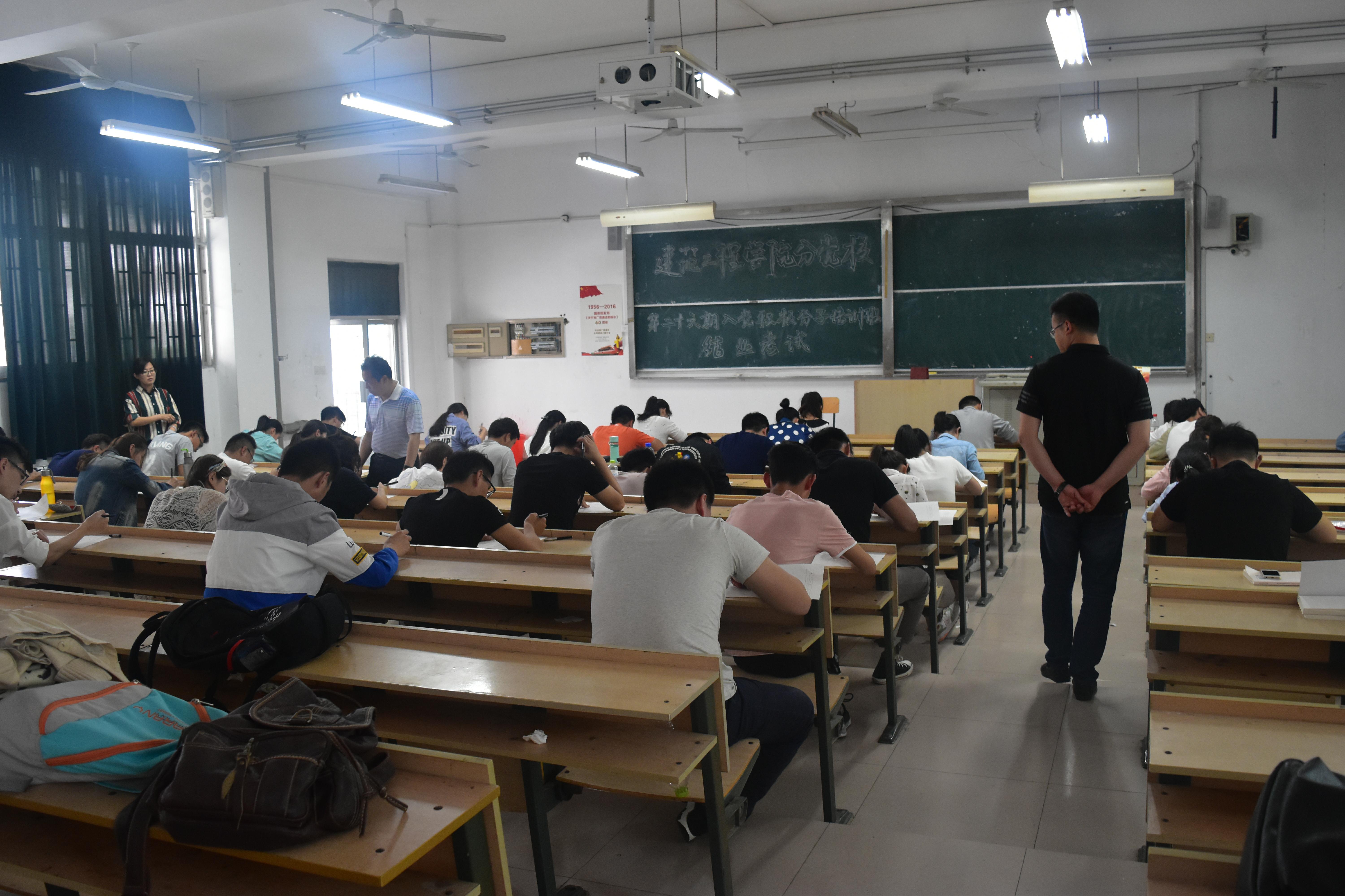 5月11日下午,建筑工程学院分党校于致远楼6102教室进行第二十六期入党积极分子培训班结业考试。党总支副书记马继武,学生党支部江浩浩、王春娥老师担任监考。