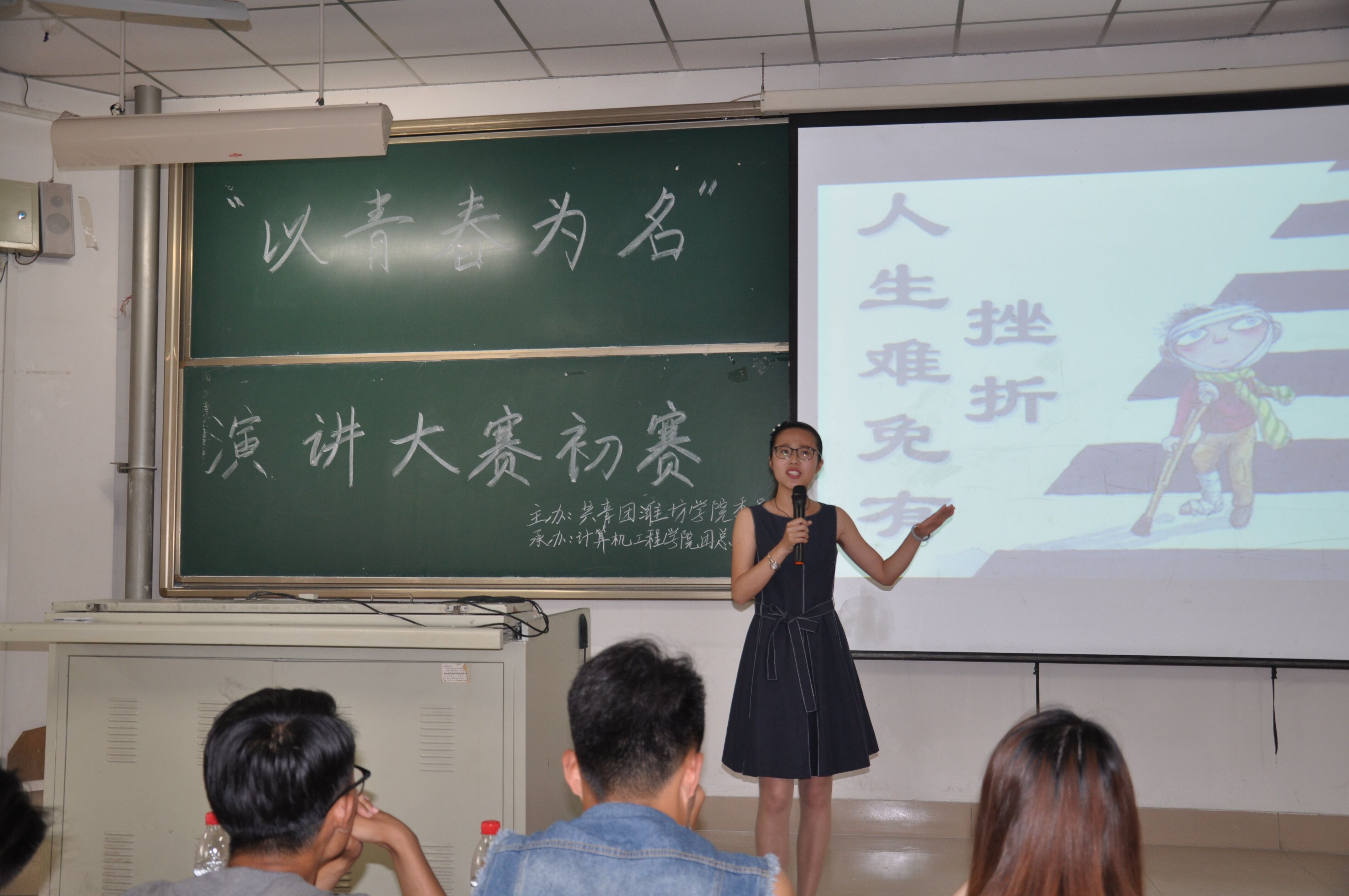 根据《关于举办潍坊学院第十七届大学生科技文化艺术节的通知》要求,为传达青春的正能量,引导大学生树立正确的价值理念,由共青团潍坊学院委员会主办,计算机工程学院团总支、学生会承办了“以青春为名”演讲大赛。吴岳和高源作为弘德书院的代表参加了此次比赛。