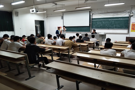 排练定在了5月14日晚上7点20,还未到排练时间,排练室内早已来了很多同学,他们有的在用手机练习歌曲,有的在跟同学交流,可见他们对这次比赛的重视程度。排练开始,教室里响起了熟悉的旋律,同学们紧跟旋律,一起合唱,激昂的歌声飘荡在整个楼层中,让听的人都忍不住跟着一起唱。合唱了几次,有一些不如人意的地方,但他们并没有气馁,排练的目的就是让他们更加熟悉歌曲,他们决定先自己练习练习,之后再合唱。于是同学们或是三两聚堆,或是独自练习,都暗自下决心下次一定要唱好,不给机电学院丢脸。过了一会,同学们再一次合唱,这次明显比前面几次好,于是他们乘胜追击,又一起合唱了几次。伴着激荡的旋律,此次排练不知不觉到了结尾,在回去的时候还能听到有些同学嘴里还哼着歌呢。