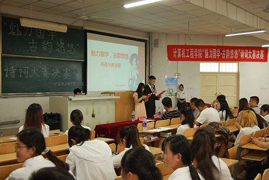 中央民族大学副教授蒙曼说过,诗词之所以美,在于它承载着作者的人生阅历。为提升同学们的诗词涵养,丰富同学们的文化内涵,激发同学们发现诗词中的美,计算机工程学院于5月21日在天一楼316教室举行诗词大会决赛,晋级决赛的参赛队伍参加本次比赛。