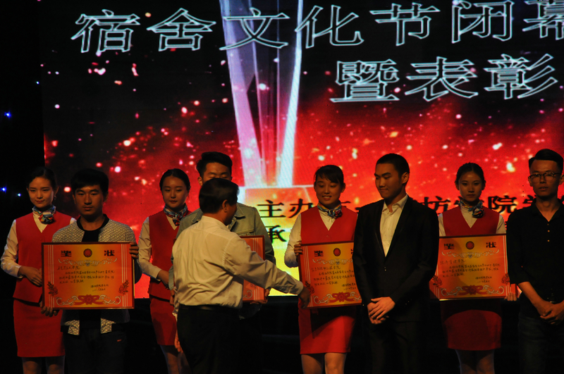 晚会伊始,大学生自律委员会带来余音绕梁的歌曲串烧,《那就这样吧》、《你曾是少年》,人声鼎沸,座无虚席。舞蹈《炫舞青春》将金色年华的活力四射演绎得淋漓尽致。学生工作处副处长张老师颁发十佳才艺宿舍奖章证书以及优秀组织奖状,向十佳才艺宿舍表达诚挚祝贺。朗诵《永远的格桑梅朵》刚柔并济,朗诵与表演将故事的演绎得天衣无缝,女兵木人石心的意志催人泪下。大学生自律委员会安顺分会的舞蹈《茉莉花》,舞姿舞韵沁人心脾。在晨钟暮鼓中的凌云意气,情景剧《老男孩》唤起无数人的青春奋斗回忆。最美的宿舍离不开宿舍的管理,潍坊学院副校长王清明为最美楼管员们颁奖并致以敬意。最后向潍坊学院第九届宿舍文化节优秀集体颁奖,集体老师代表接受奖状。宿舍文化节晚会在歌曲《明天会更好》中圆满结束。