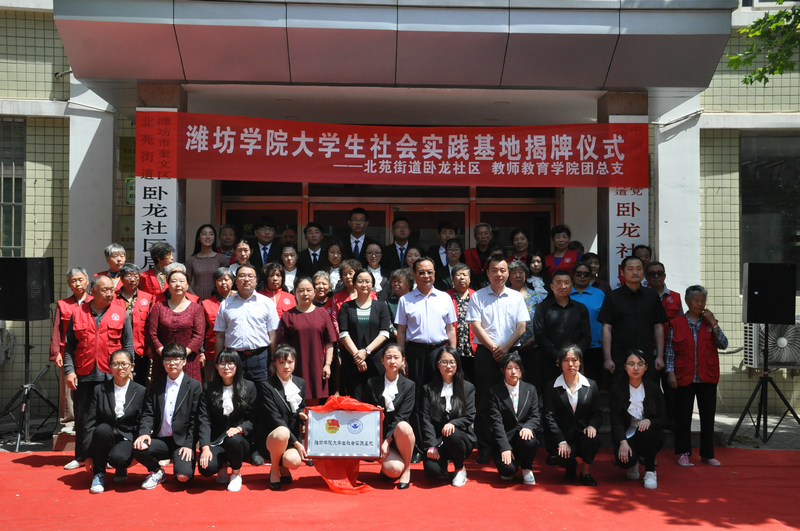 为了增强当代大学生服务社会的意识,2017年5月25日10点,潍坊学院教师教育学院代表团与卧龙社区举行了大学生创业实践基地签约揭牌仪式。潍坊学院团委副书记徐加金、教师教育学院党总支副书记吴明、教师教育学院学工办主任陈爱军、教师教育学院团总支书记陈海霞参加本次仪式。