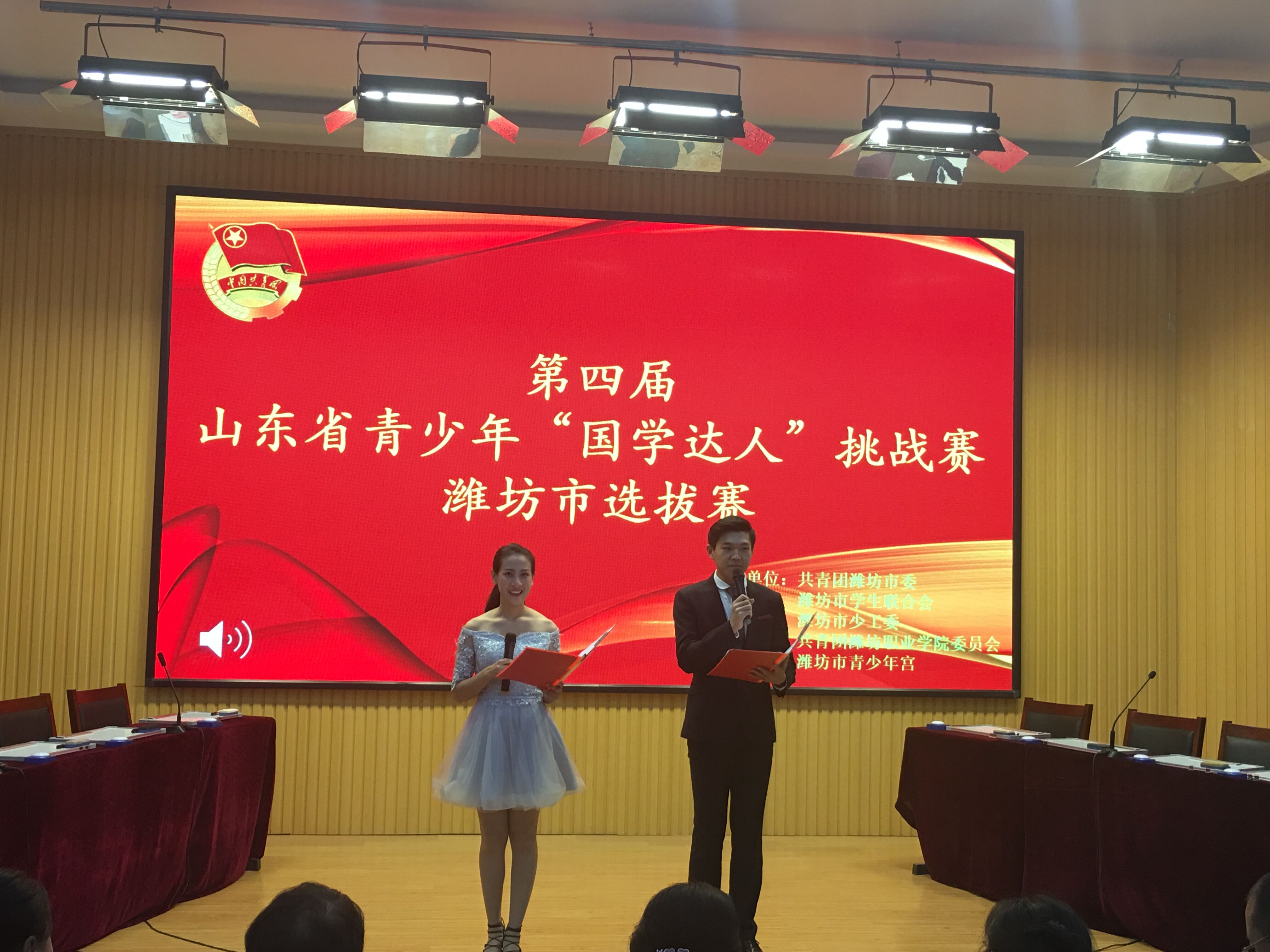 5月25日,第四届山东省青少年“国学达人”挑战赛潍坊市选拔赛在潍坊职业学院奎文校区举行,来自弘德书院应用统计学专业的两名学生黄宗莹、张书铖以及来自文学与新闻传播学院2015级汉语言文学专业学生马红草通过前期层层选拔,并代表潍坊学院参加了此次比赛。