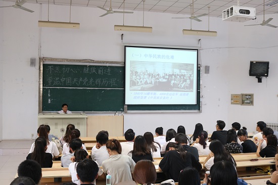 此次讲座由经济管理学院党总支副书记王海梅主持。讲座过程中杨教授用具体的历史事件详细的讲述党在革命建设年代带领人民艰苦奋斗不懈求索以及在和平发展时期带领人民发展经济奔小康的故事,都是事事处处不忘初心执政为民立党为公的故事,带领在场的所有人重新回顾了中国共产党的发展历程,向每一位在场的师生讲述了什么叫做“没有共产党就没有新中国”。每一位老师和学生都认真倾听杨教授的演讲,对杨教授讲述的内容进行深刻的理解和反思。杨教授的深入讲解,也获得了在场所有人的一致认可。