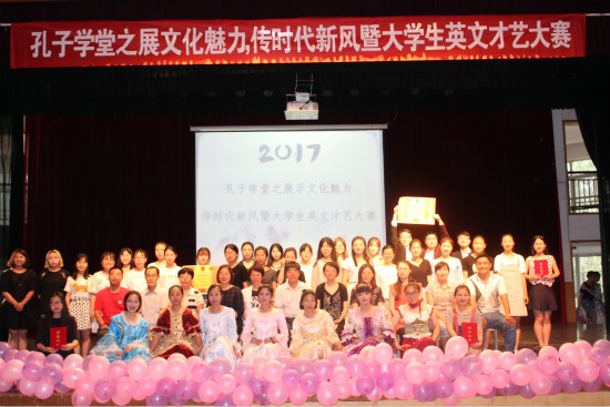 为提高中外文化认知水平,激发当代大学生对传统文化及专业知识的学习兴趣,外国语学院团总支于6月11日在闻韶楼报告厅举办了孔子学堂之展文化魅力,传时代新风暨大学生英文才艺大赛。