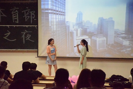 晚上七时许,在小小的4109教室里洋溢着欢乐的气氛中,“体育部之夜”正式开始。体育部精心准备的节目开始目不暇接地登场。