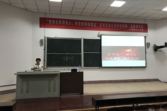 为贯彻落实习近平总书记在全国高校思想政治工作会议上的讲话精神,加强大学生对党的革命历史的了解,引导学生增强爱党爱国情怀,2017年6月19日晚7:30,马克思主义学院在齐贤楼2109教室举行“听党的故事,永远跟党走”系列活动之“讲长征故事,品信仰味道”主题讲座,本次讲座由谢明慧老师担任主讲人,由学生工作办公室主任赵静老师主持,马克思主义学院的全体同学积极参加了此次讲座。