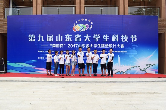 6月19日至21日,“第九届山东省大学生科技节”2017山东省大学生建造设计大赛在山东建筑大学落下帷幕。历经三天实地搭建和激烈角逐,由我校建筑工程学院郝鑫、姬腾飞、杨柳、范丽丽、卢广源、李羽桐、张翔、秦瑞彬、史磊、孙浩等十名同学组成的代表队凭借参赛作品《窗》最终荣获二等奖。