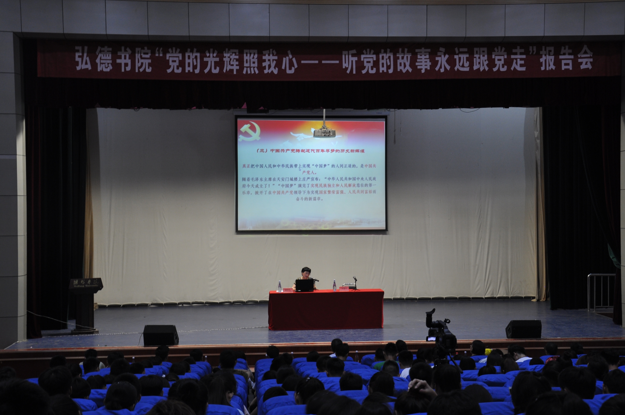 6月23日下午三点三十分,弘德书院“党的光辉照我心——听党的故事永远跟党走”报告会在图书馆报告厅隆重举行。本次的报告人是马克思主义学院的魏晓迪教授。出席本次报告会的嘉宾有弘德书院副院长刘德才以及书院全体辅导员老师,本次到场的还有16级全体入党积极分子。