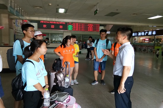 7月13日中午,“1+1”志愿服务队的队员们怀着激动的心情乘车前往汽车总站。让队员们暖心的是,数学与信息科学学院团总支副书记王鑫莉老师早早来到汽车站为队员们送行,她送给队员们宝贵的建议与亲切的鼓励,让队员们的内心充满力量。