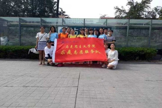 2017年7月14日上午七点半,马克思主义学院求是志愿服务队全体成员在潍坊学院北门集合,开始了暑期“三下乡”社会实践活动——走访坊茨小镇。