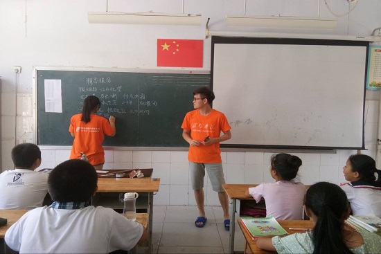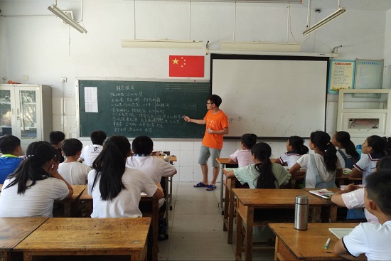 下午2点20分,离上课还有十分钟,同学们早早就在教室坐好,以迎接志愿服务队员的到来。2点30分正式上课,当看到同学们一个个精神饱满,目光期待,志愿队员们感受到了温暖。在与同学们进行沟通之后,志愿服务队成员们决定从事先准备的歌曲中选取一首《精忠报国》来教给同学们。这首十分流行且励志的歌,曾经激励无数中国人的爱国心。