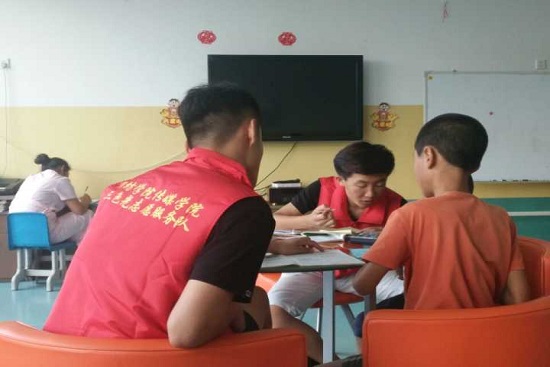 “奉献爱心,你我先行”。7月21日下午,传媒学院三色光志愿者服务队的同学们在潍坊市儿童福利院准时和小朋友们见面。通过前两天辅导功课,孩子们和志愿者们已经熟悉了。志愿者们为了照顾到每一个孩子,考虑到他们的年龄、知识水平等因素,把他们分为若干个小组,保证了每一个孩子都可以被关注到。