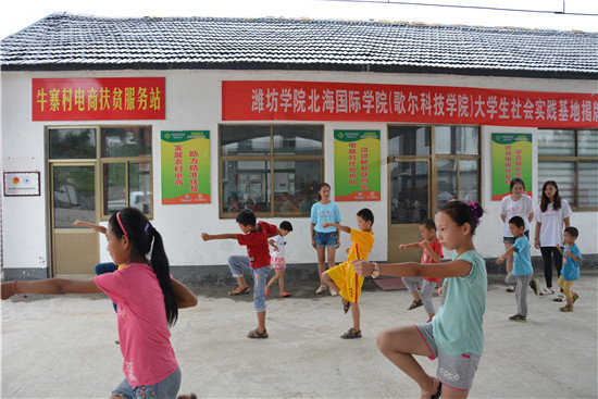 “欢乐军体拳,暖阳爱相随!”希望他们以后每次打军体拳的时候,会想起暖阳志愿者服务队成员们带得他们的欢乐,这便是支教活动的真正意义所在。