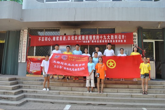 2017年暑期,生物与农业工程学院团总支、学生会组建“向日葵”青年志愿者理论普及宣讲团,以“喜迎十九大·青春建新功”为主题进行政策理论义务宣讲系列活动。宣讲内容围绕习近平总书记系列重要讲话精神和治国理政新理念新思想新战略,向广大村民进行理论普及。宣讲团活动的第二站,是潍坊市寒亭区吴官庄村。