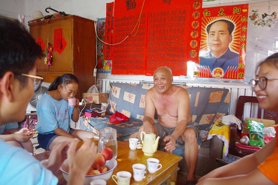 王爷爷说着,又提到了习近平总书记的反腐倡廉:“俗话说'人为财死,鸟为食亡',其实钱财都是虚无缥缈的,只有真正的朋友才是自己一生最大的财富。你们现在正处于人生最美好的时期,一定要与身边的人好好相处,他们才是你们最宝贵的东西”,王爷爷认真地教导着志愿者们,“你们来这里实践,虽然苦点,但也是好事,先接触接触社会,吃了苦,才知道学习是唯一的出路。你们一定要好好学习啊”。志愿者们都同意地点点头。