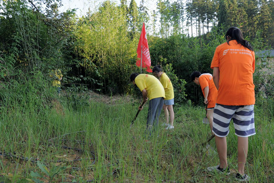 从没干过农活的志愿者们也像当地的居民一样,提着锄头在杂草地里去除掉杂草。务农工具的使用,并不像平时看见的那样简单。使用的力度和手握工具时的姿势,统统都是有讲究的。只有用正确的方法使用工具,干活的时候才轻松。但志愿者们只是干了一会儿,便开始腰酸背痛,志愿者们纷纷说:“我们仅仅干了半晌,而日日夜夜辛勤劳作的当地居民却一干便是一天,更何况顶着烈日”。