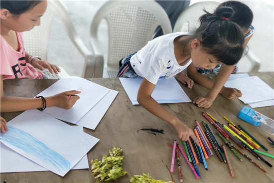 时间过得真快,26号,已是暖阳支教志愿者服务队来到牛寨的第七天,队员们为了培养孩子们的绘画兴趣,准备好了画笔和颜料,为当地孩子们上了一堂别开生面的美术课。