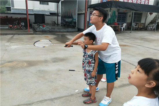 七月二十九日,暖阳之行第十天,回想过去九天的历程,让人心头荡漾起温馨与感动。今天阳光明媚,为了不辜负这么好的天气,志愿者们决定与孩子们一起打羽毛球,挥洒青春欢乐的汗水。