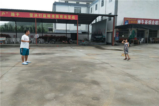这里的孩子运动器材很是缺乏,去年寒假暖阳志愿者们带来的玩具篮球架与乒乓球深受孩子们的喜爱,所以此次支教成员们便带来了多副羽毛球拍送给孩子们。当志愿者们来到约定场地时,孩子们看到羽毛球拍都格外兴奋,纷纷嚷着要进行“羽毛球大赛”,志愿者们与孩子们分为两大阵营,轮流上阵,采用十局六胜制比赛规则、抽签决定上场的顺序的方法。这些孩子们平时练习有限,所以几乎是不会的。但志愿者们依旧耐心的陪着他们打。孩子们发球总是失败,志愿者们便一次又一次地捡起球来递给孩子并鼓励他们重新发球,有时还假装接不到球担心孩子们有挫败心理。结果当然是他们获得完全的胜利,赛后我们把彩笔当作奖励分发给他们,他们欢呼着说“老师真笨,羽毛球不如我们打的厉害,我们赢喽!”。我们都只是笑笑不说话。最后我们跟村委会的成员们商议,将这些羽毛球拍寄存在村委办公室,孩子们每次想练习了就去取,这是属于大家的运动器材,也是属于大家的快乐。