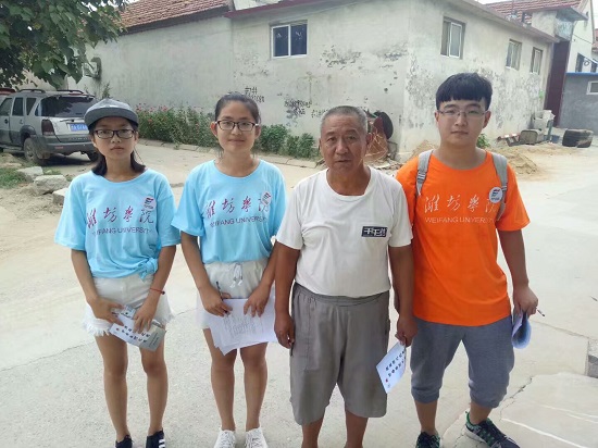 8月13日,迎着朝阳,带着希望,在这个初秋的清晨,潍坊学院晨曦志愿者服务队——美丽中国实践团来到黄河西岸西张家庄村,开展了为期一天的入户实践调研活动。