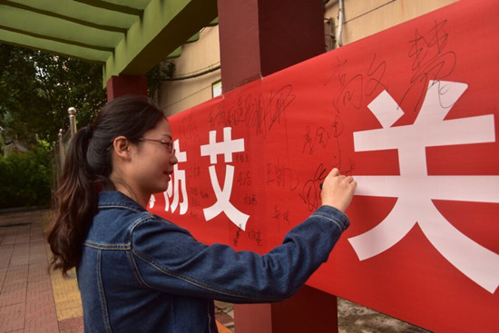 在活动现场,同学们向社区居民发放艾滋病防御宣传单页,耐心介绍艾滋病的传播途径、方式及预防办法。同学们还通过签名、宣讲、有奖竞猜等丰富的形式与社区居民互动,加深居民对艾滋病的认识。宣讲人是文学院学生会主席桑洪涛,他幽默诙谐的演讲风格不时引得全场哈哈大笑。社区居民听得极其认真,并不时发表自己的看法,在竞猜环节也能对答如流。活动取得了良好效果。桑洪涛说:“以前演讲都是在学校里,这次能够走出学校进行演讲,感到十分荣幸,希望能为艾滋病知识宣传尽一份力。”
