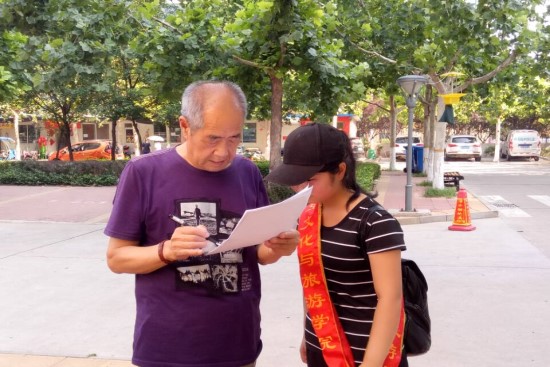 活动中,队员们团结一致。一人负责指导受访人员填写问卷调查,另一人则负责照片采集和录制视频。在采访中,同学们使用方言与受访老人交流,队员荆雪梅说,“我们采集不同年龄段的问卷调查信息,希望更全面的涉及,找出当地雾霾问题的根源,反映给相关部门进行治理。”同学们以积极的心态参与到本次实践活动中,通过参加这次活动,同学们不仅仅对雾霾问题进行深层次的思考,更锻炼了同学们与人交流的能力,拉近同学与社会的距离。