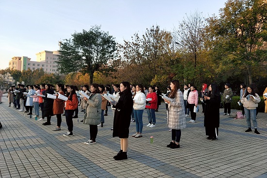 10月31日早晨6点50分,迎着清晨的第一缕阳光,传媒学院播音与主持艺术专业2017级全体同学相聚弘德湖畔进行专业练声。2017级播音与主持艺术专业老师杨柳、辅导员助理张梓钰指导此次练声。