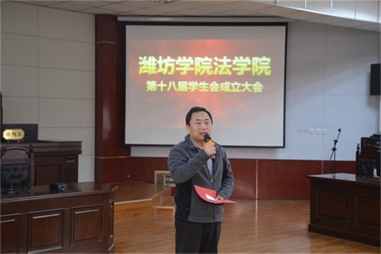 为促进法学院学生会工作薪火相传,不断发展,法学院特于11月2日下午3:00在人合楼8321模拟法庭举行第十八届学生会成立大会。法学院党总支副书记曹兴波老师、学生工作办公室主任王秀慧老师、实训中心主任杜立聪老师、17级辅导员宋薇老师应邀出席本次大会。法学院第十七届主席团成员以及第十八届学生会全体成员参加了本次大会。