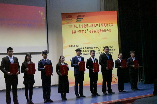 11月2日下午,由共青团潍坊市委、共青团潍坊学院委员会承办的“2017年山东省暨潍坊市大中专学生志愿者暑期"三下乡"社会实践活动报告会”在潍坊学院图书馆报告厅顺利举行。参加汇报的是入选潍坊市20个社会实践优质项目的团队,由评委现场打分评选。