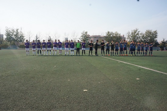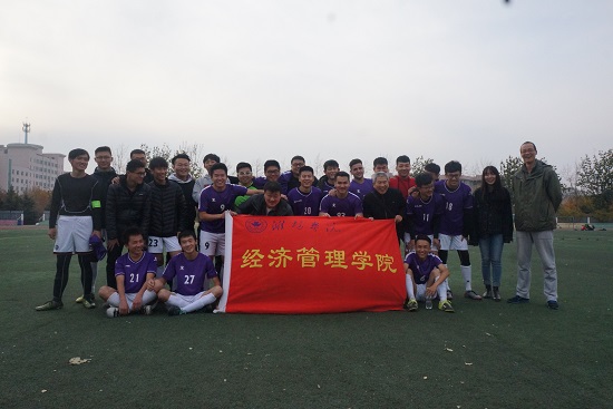 为提高同学们的体育锻炼意识,增强同学们的身体素质,潍坊学院大学生足球协会举办迎新杯足球联赛。2017年11月12日于潍坊学院体育场进行足球赛小组赛第二场,本次比赛由经济管理学院足球队对战机电工程学院足球队。经济管理学院学生工作办公室主任徐会全及经济管理学院辅导员刘波老师、吴海鹏老师、喀蔚宇老师以及主席团的成员到达现场给球员加油助威。