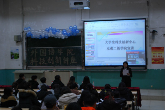 为了使外国语学院的各位同学更加了解潍坊学院校科技创新的相关信息与活动,11月20日晚七点,“校科创进外院”活动在3号楼3136教室举行,外国语学院17级新生一同听区了校科创相关负责人的发言与介绍。