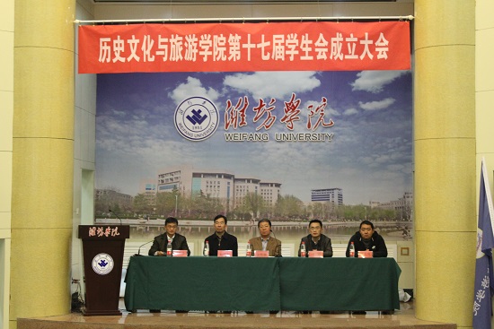 11月21日晚,历史文化与旅游学院第十七届学生会成立大会于潍坊学院行政楼一楼报告厅隆重举行。历史文化与旅游学院院长任怀国、团总支书记刘效磊、实训中心主任于国、2015级辅导员刘海泉和2016级辅导员岳文博莅临本次大会。潍坊学院校学生会主席团成员、各二级学院学生会主席、历史文化与旅游学院第十六届学生会主席团成员以及第十七届学生会全体成员也一同参加了本次大会。