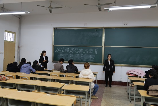 为深入学习党的十九大精神,做新时代合格共青团员,11月23日下午,马克思主义学院于2207教室举办了以“歌颂十九大精神,争做新时代合格团员”为主题的团日活动。本次活动由2016级思想政治教育一班团支书李晨曦主持,计算机工程学院学生团总支副书记受邀担任评委,2016级思想政治教育一班全体学生参加。