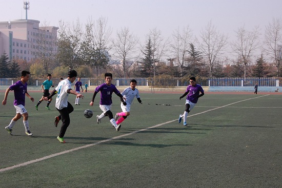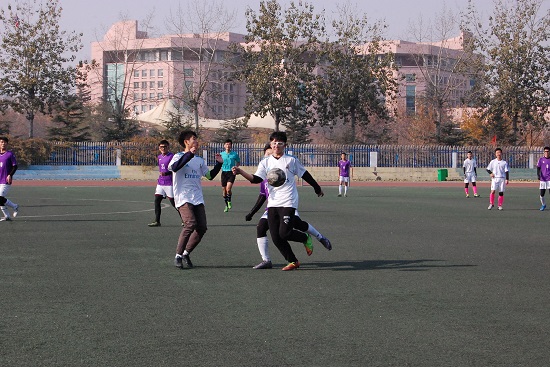 比赛通过猜硬币决定进攻方,裁判一声哨响,比赛开始,队员们无惧寒风,在赛场上奋力拼搏。两支球队进攻目的很强,尽力去攻破对方防线。经济管理学院足球队防紧密防守,队员们的多次进攻被拦截。对方前锋球员与中锋球员相互配合突破底线攻进一球,获得领先优势。激烈对抗中,22号队员徐长斌不慎摔倒,右腿膝盖擦伤,在用清水冲洗后,迅速回到队伍中。队员们以团队为重,展现出青年学子奋发向上,拼搏进取的良好的精神面貌。双方队员拼尽全力进攻,力争获得最后的胜利,最终经济管理学院以1:0的成绩获胜。此次比赛,同学们赛出了水平,赛出了友谊。虽然计算机球队没有赢得此次比赛,但是收获了宝贵的经验,同时增进了二级学院的友好关系,最后双方队员合影留念。