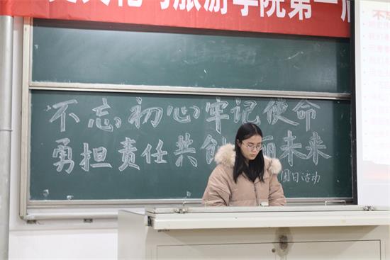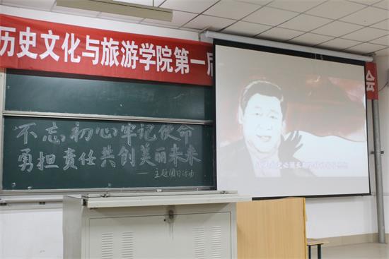 为了庆祝十九大顺利召开,弘扬十九大精神,全面提升广大青年团员的爱国精神,历史文化与旅游学院2017级公共事业管理专业团支部于12月4日晚在8421教室举行了以“不忘初心,牢记使命,勇担责任,共创美丽未来”为主题的团日活动。