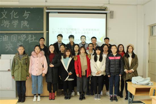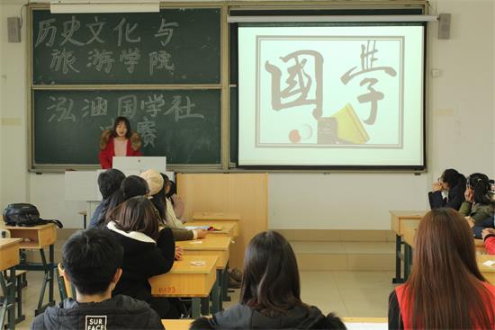 为了弘扬和传播中华民族的优秀传统文化,提高同学们的文化素养和国学知识能力,唤起同学们对中华传统文化的热爱之情,历史文化与旅游学院于12月10日下午1:30在8423教室举办了以“温古而知新”为主题的国学知识竞赛。历史文化与旅游学院学生社团联合分会副会长黄家乐、办公室主任吴华敏、社团实践部部长崔桂香、副部长孙源利担任本次比赛的评委。