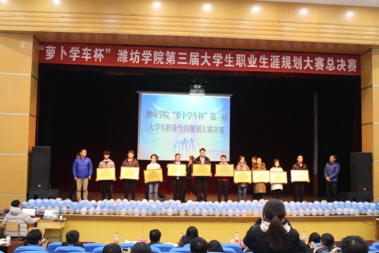 为丰富同学们的课余生活,引导和帮助同学们科学地规划职业生涯,由潍坊学院招生就业处主办,大学生职业发展协会协办的“萝卜学车杯”第三届大学生职业规划大赛决赛于2017年11月17日下午两点在闻韶楼顺利举办。