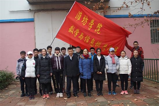 为了增强团体竞赛意识,培养学生坚韧自强的精神,2017年12月15日下午潍坊学院在风雨球场举行了“潍坊学院第十七届冬季长跑比赛”,数学与信息科学学院参赛队共16名运动员代表参与比赛,同其他二级学院参赛队进行激烈比拼。该院学生工作办公室主任王秋霞老师和团总支副书记王鑫莉老师到现场为参赛选手加油。