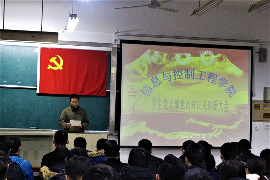 为了进一步完善党员队伍建设,信息与控制工程学院于12月19日在致远楼6#206进行了学生党支部纳新及转正大会。会议主要讨论了贾浩等10名预备党员的转正问题以及杨丽等21名发展对象是否能加入中国共产党的相关事项。会议由信控学院学生党支部书记王慧老师主持,信控学院党总支副书记仉新刚、团总支书记马爱群、辅导员于玲老师、辅导员台流臣老师以及全体学生党员、预备党员、发展对象出席了此次会议。