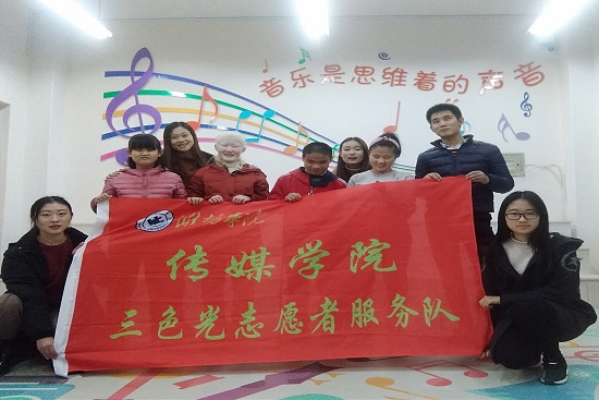 12月17日下午,传媒学院三色光志愿者服务队播音与主持艺术专业的同学再一次来到了潍坊市盲童学校,让孩子们体会学习语言的艺术与魅力。