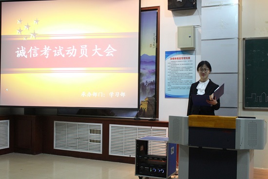 人生天地之间,若白驹过隙,忽然而已。转瞬间,期末将近,为加强校园学风建设,端正考风考纪,调整学生的考试心态,特教幼教师范学院于12月20日晚7:00在办公楼一楼多媒体教室内举办期末诚信考试动员大会。各班级班长和团支书参加了本次大会。