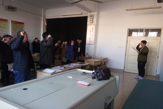 徐金德代表支部委员会汇报了集体讨论研究同意5位预备党员按期转正的意见。在监票人检查票箱后,参加大会的正式党员进行了无记名投票,经监票人监票、计票人现场计票,宣布5人全票通过,大家鼓掌表示祝贺。党员纳新与转正结束后,全体党员起立,面对党旗庄严宣誓入党誓词。