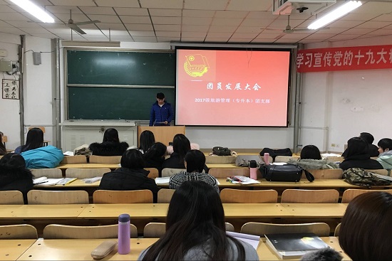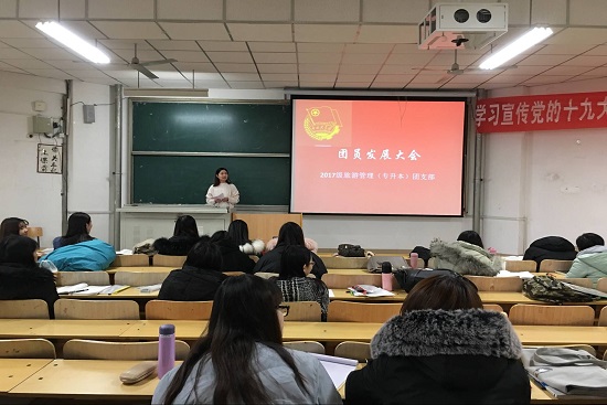 12月22日上午,历史文化与旅游学院2017级旅游管理(专升本)团支部在人合楼8421教室举行团员发展大会,团支部全体团员和入团发展对象参加了此次大会,大会由团支部书记代菲菲主持。